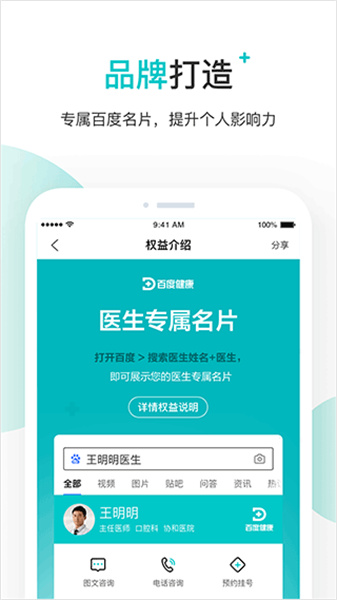 百度健康亿级流量扶持,百家号、百度百科、直播等百度平台支撑,多种医生专属权益,全面助力医生打造个人品牌。