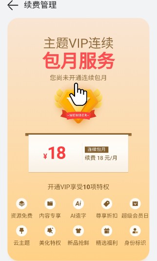 2.打开荣耀主题App > 我的 > 会员中心 > 屏幕向下滑动最底部 ,取消自动续费。(或点击进入“续费管理”查看或取消 ,“点击进入”仅限手机端跳转 。)