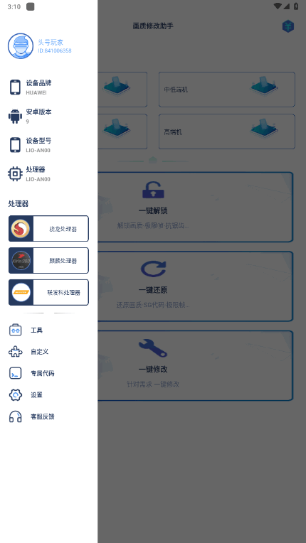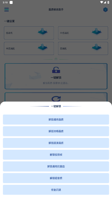 3、你还可以通过一键解锁你想要的画质,或是一键还原等,甚至是针对你的需求进行一键修改;