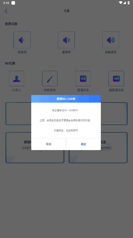 7、在这里你还可以对音质、SG等进行切换,能够解锁超高清、120帧画质;