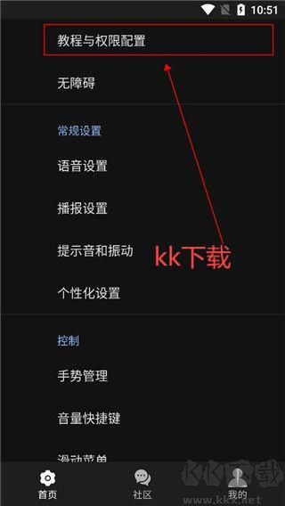 1、在kk下载站下载并打开app,点击【教程与权限配置】。