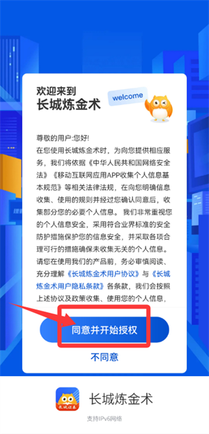 1、启动应用后请先阅读用户协议与隐私政策,确认后点击同意授权。