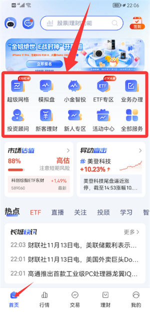 3、在首页功能区,可选择超级网格、模拟交易等多项服务工具。